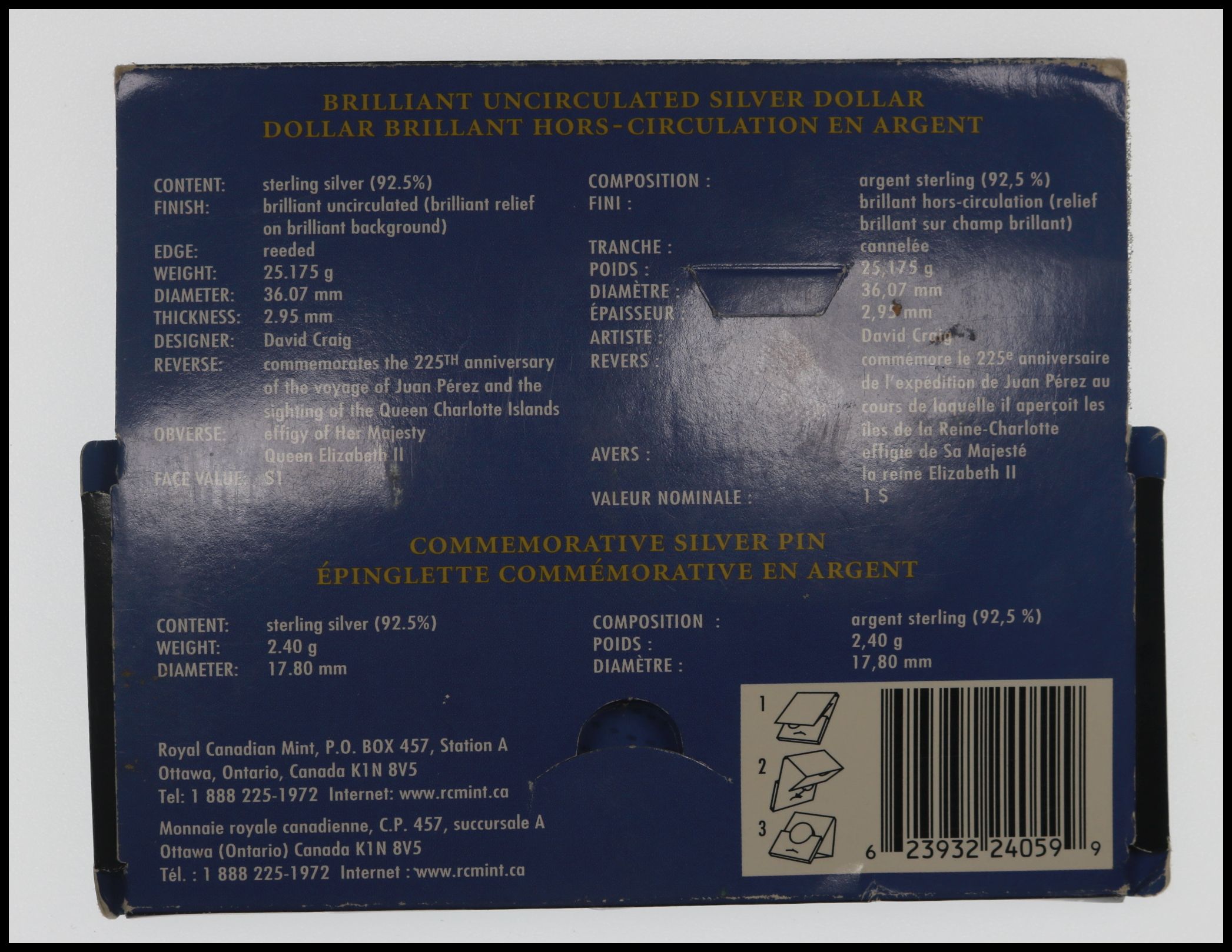 1999 $1 THE VOYAGE OF JUAN PEREZ, 225TH ANNIVERSARY – STERLING SILVER DOLLAR