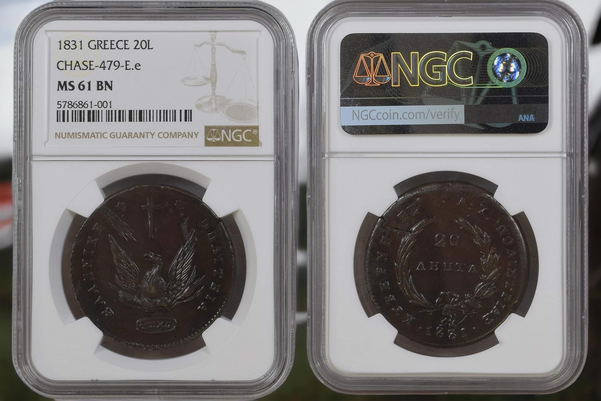 NGC Cert #5786861-001 NGC Description 1831 GREECE CHASE-479-E.e 20L