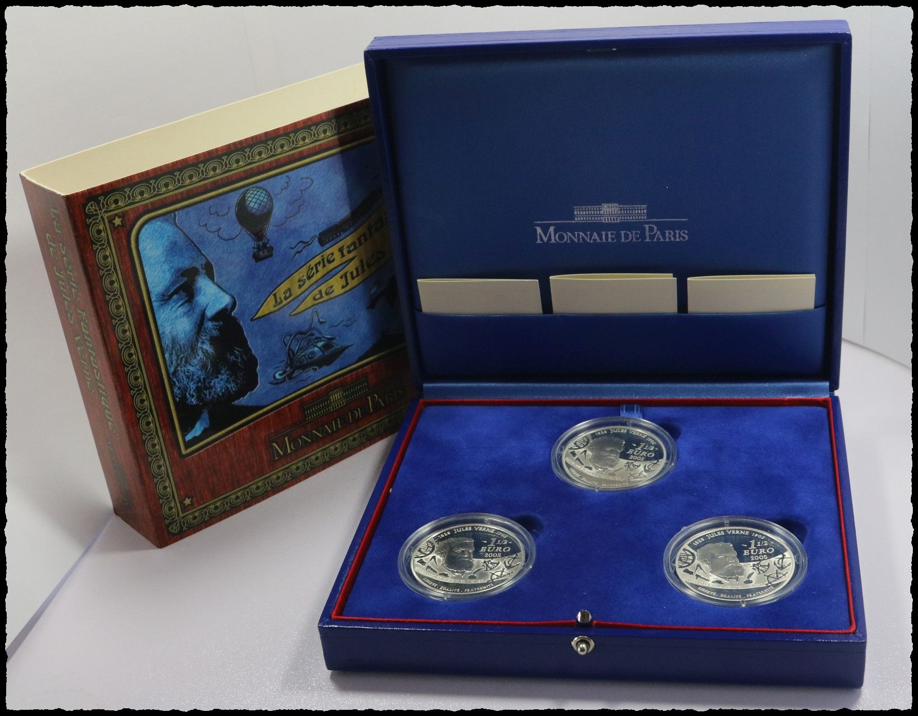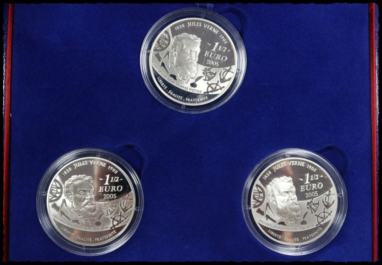 France Monnaie De Paris 3 x 1 1/2 Euro 2005 Silver Proof Jules Verne Series Box & COA Rare