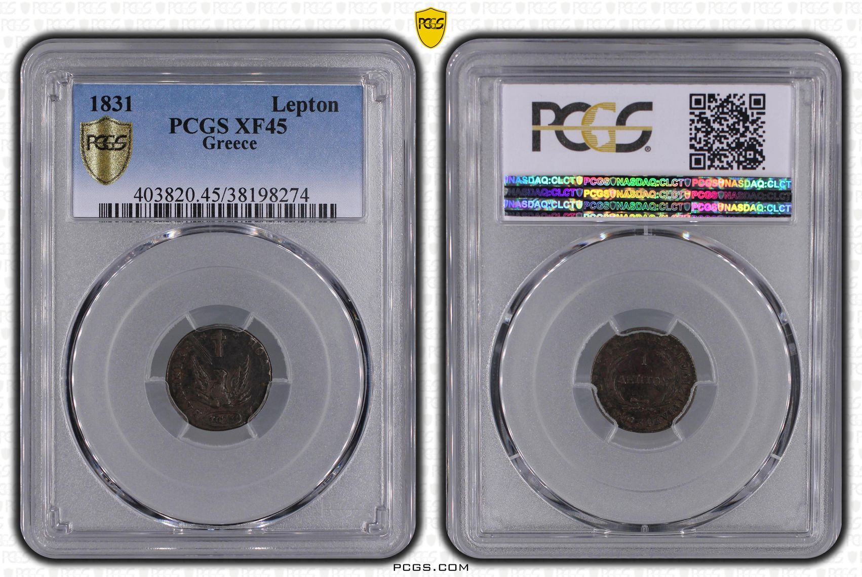 Greece 1 Lepton 1831 type C Variety “353-J.f” (RARE) by Peter Chase PCGS XF 45