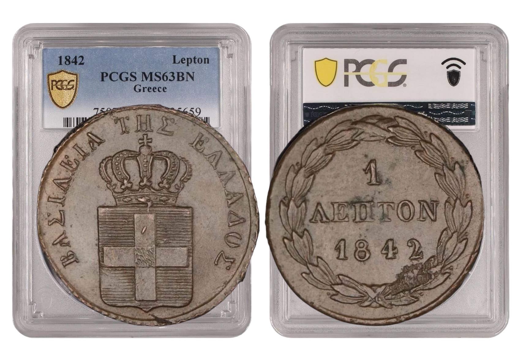Greece King Otto 1 Lepton 1842 KM#13 PCGS MS 63BN