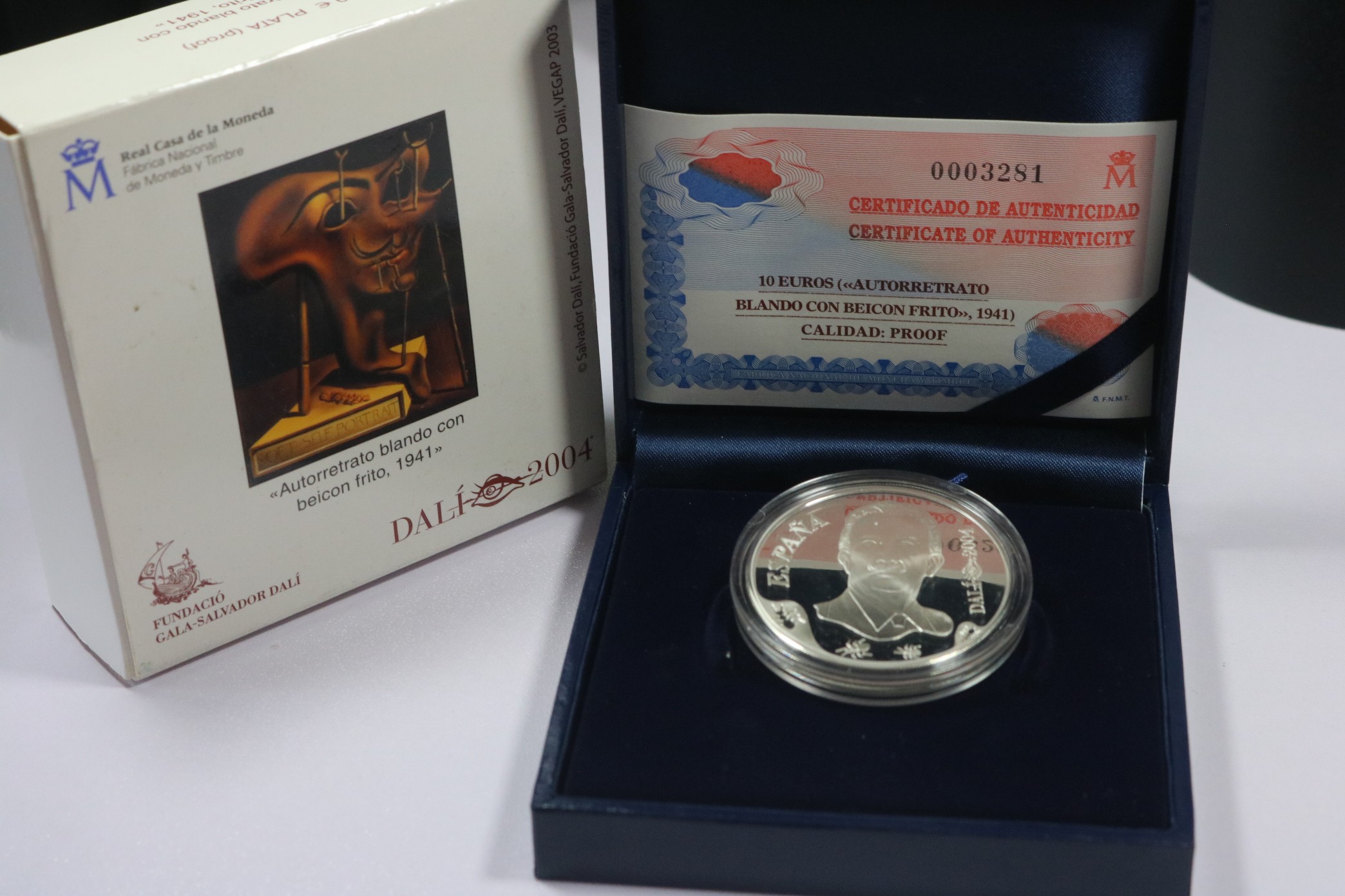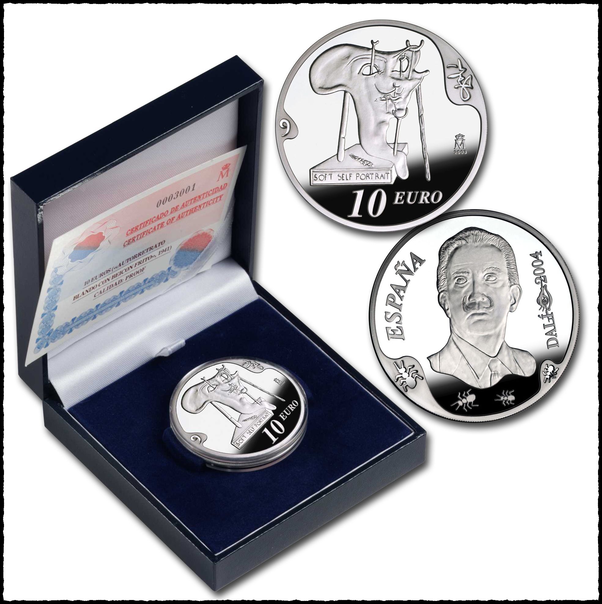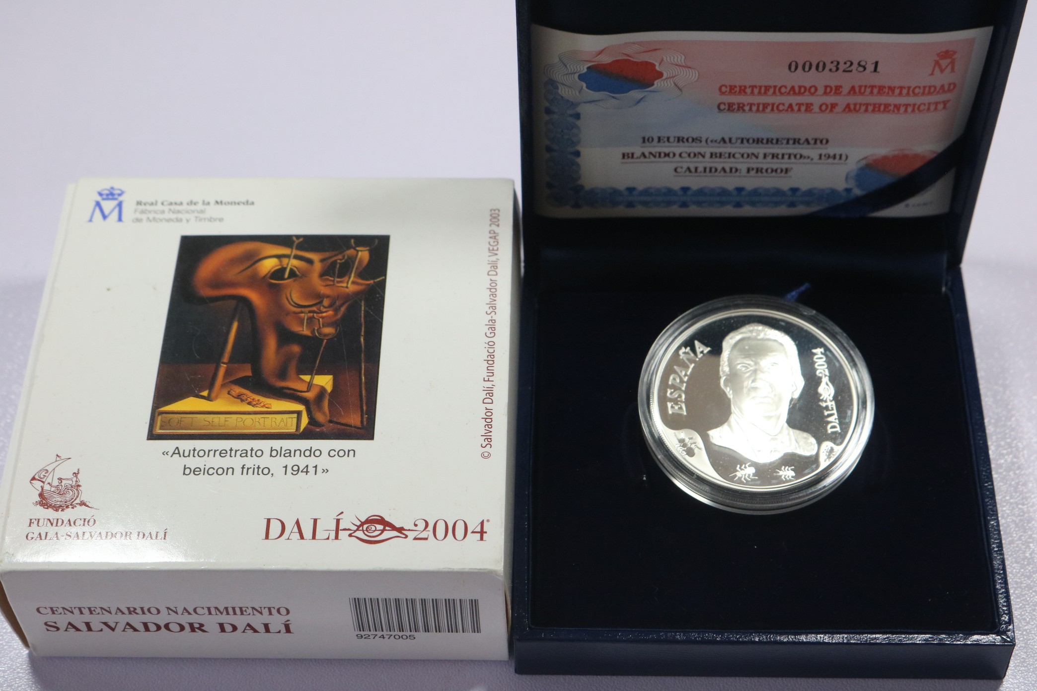 Spain 10 euro 2004 Silver Proof Salvador Dali Autorretrato blando con beicon frito 1941 commemorative.